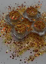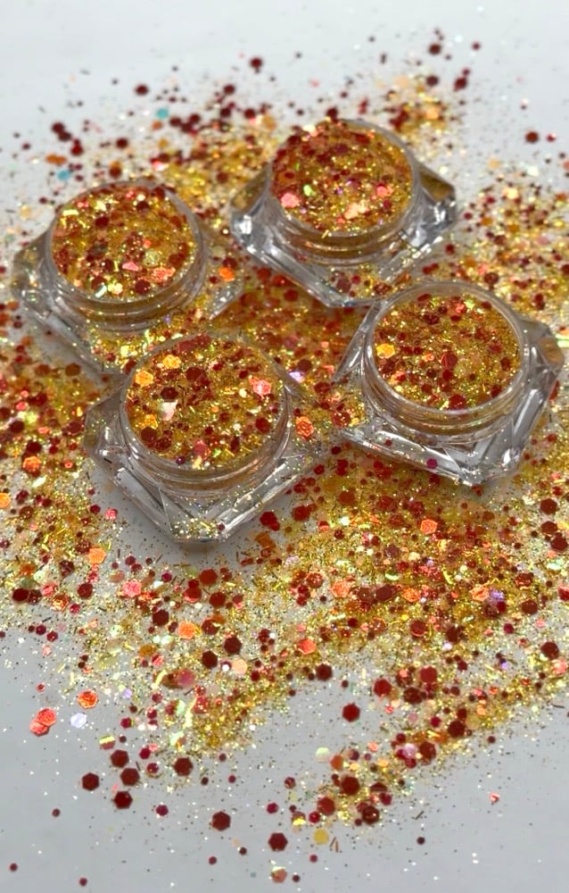 Flamin hot is a reddish orange yellow glitter