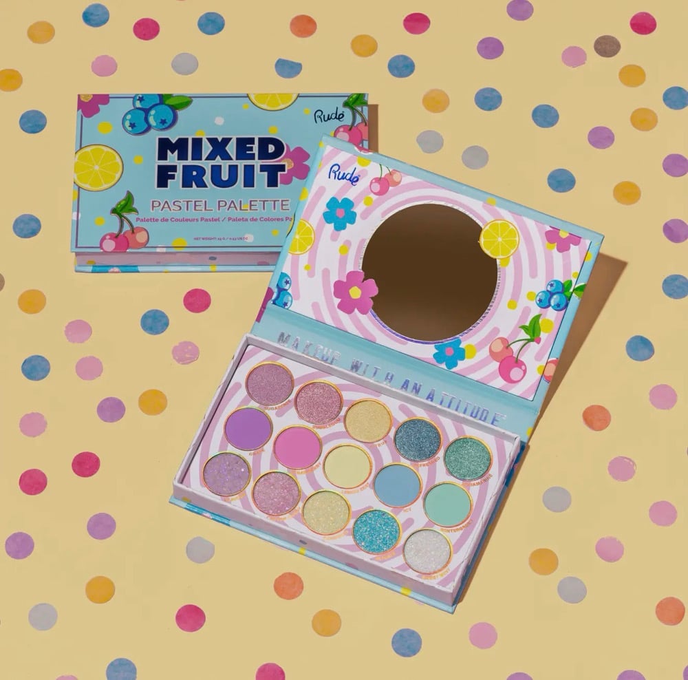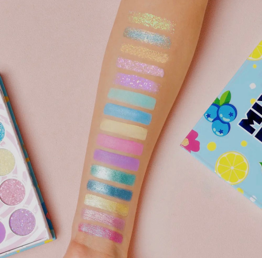 A palette that allows you to play with and create the sweetest makeup looks offering 5 shimmer, 5 matte, and 5 glitter shades in rainbow hues.