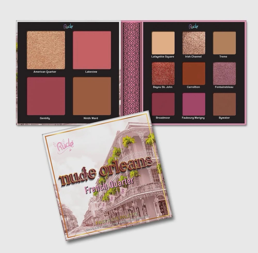 Pack light and explore the city of Nude Orleans with this face and eye palette. With four face sculpting shades and nine natural matte and shimmer shadow shades, this palette is curated to allow you to strip down and embrace your natural, vibrant self.